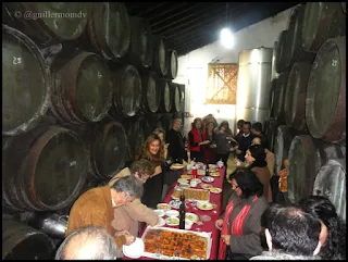 Este vino fino es diferente, y es extraordinario. Tiene un intenso color amarillo alimonado como ningún otro. Es muy fragante, muy aromático, por supuesto, pero donde de verdad me sorprendió - a parte del color - es en boca. Era suave, sedoso, ligero; con un paso por boca que no rasca, ni se nota el alcohol que tiene, los reglamentarios 15º. Sencillamente espectacular, un gran fino con sus 8 o 9 años de crianza media, por el tradicional sistema de criaderas y soleras. Un fino natural, como los de antes, dicen los más veteranos, o como dice el poeta "...para vivir y morir contento".